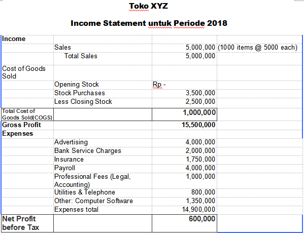 Laba ini adalah selisih antara penjualan dengan semua biaya dan beban operasi.
